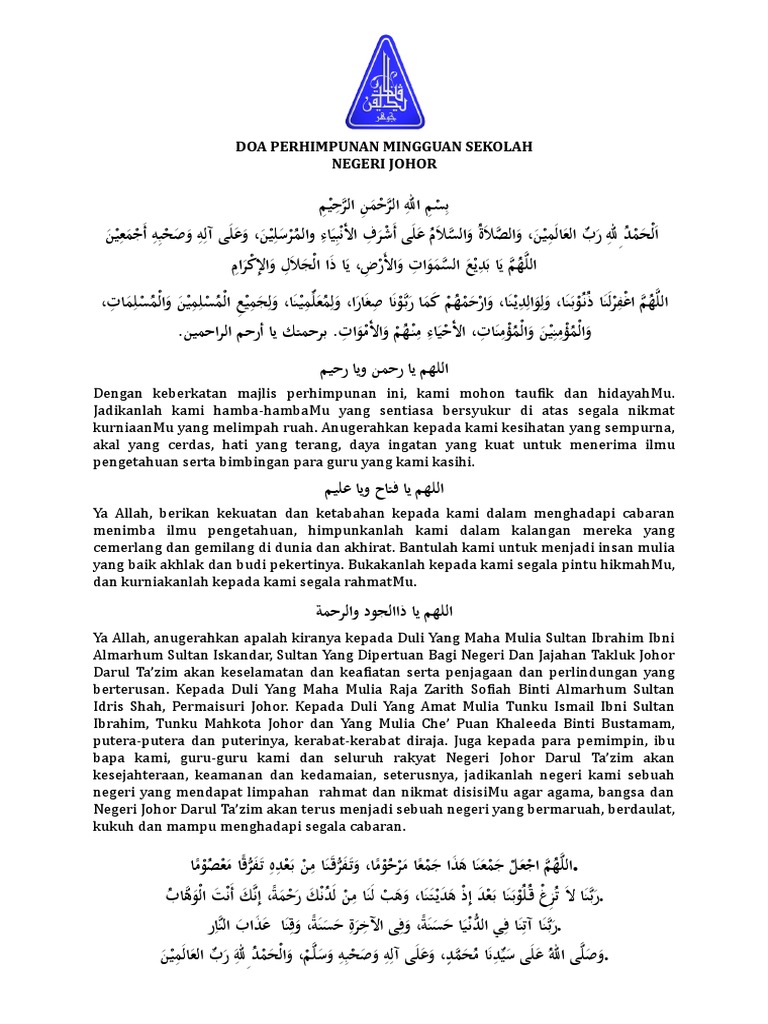 Doa Perhimpunan Mingguan Sekolah Negeri Johor Pdf